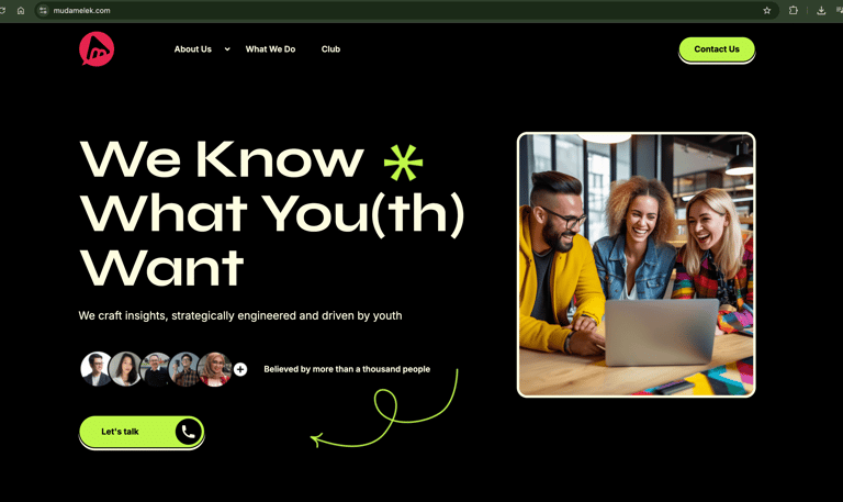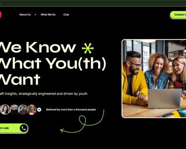 A fresh, visually dynamic company profile website for a growing marketing agency targeting youth and Gen Z brands. Built to enhance credibility, showcase creative work, and attract new clients.