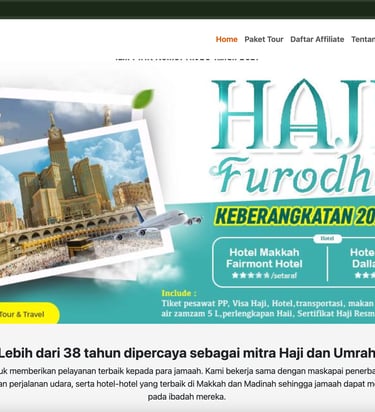 A custom-built landing page and registration system for an Indonesian pilgrimage service provider. Transitioned their manual, WhatsApp-based booking into an automated web-based system with an affiliate feature to expand reach.