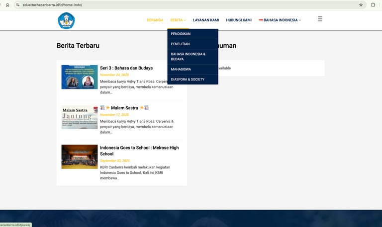 An official information platform for the Education and Cultural Attaché of the Indonesian Embassy in Canberra, supporting education, culture, and academic collaboration between Indonesia and Australia.